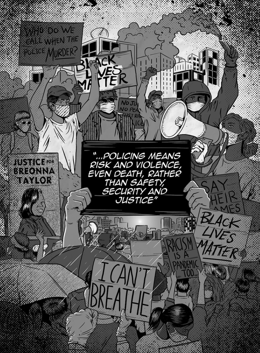 “The demands continue, each day growing louder, more urgent. Reform is a dead end. If we are to live free of terror, the police must be reimagined, replaced – abolished. This unflinching and beautifully illustrated collection gets right to the point, the battle for a new future is now and the frontline is everywhere.”