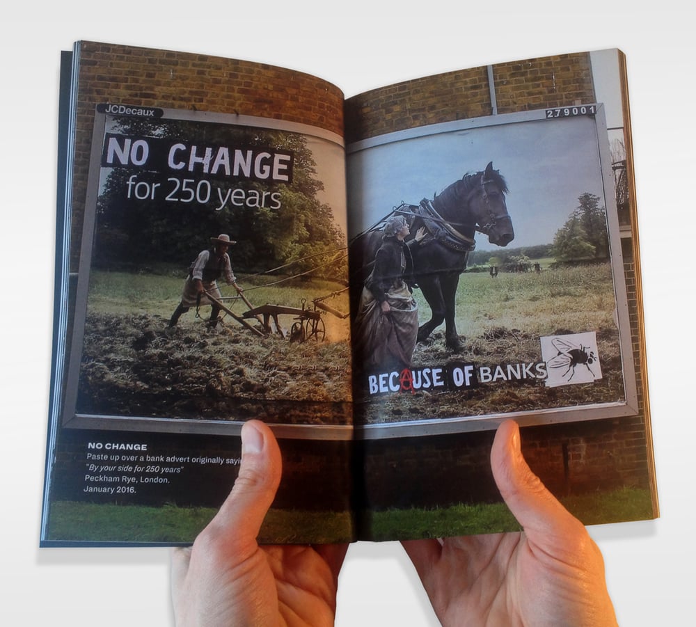 “It’s important in a political struggle to not provide an identity, not just for legal reasons, but because every new identity, every new style, every rebel attitude is easy to reproduce for the market, and then easy to be sold. That’s also why I use different styles, why I experiment with different mediums, to avoid generating images that are all the same. Subvertising works better if you can’t tell straight away if it is subvertising or not. It has to be illegal, of course, but it also has to be sneaky....”